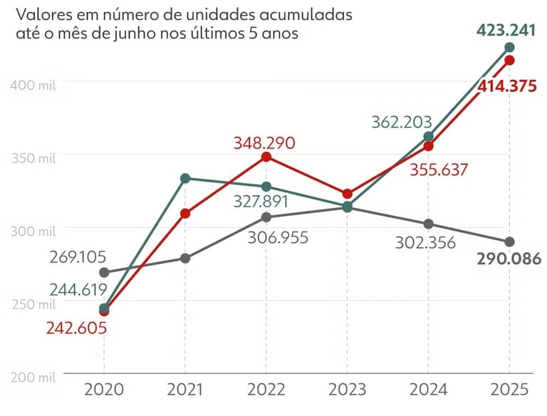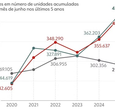 Porém, mesmo com esse ritmo positivo, o estoque de imóveis novos recuou 4,1% e alcançou o menor patamar já registrado — cerca de 290 mil unidades em junho.